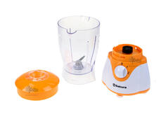 Измельчитель SAKURA SA-6233A в ярком белоснежно-ораневом корпусе оснащен прозрачным контейнером с универсальными ножами. Прибор неприхотлив в чистке и обслуживании. Незаменим для для измельчения мяса, лука, овощей и фруктов, благодаря универсальности ножа.