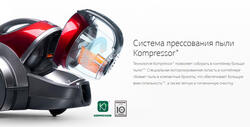Специальная моторизированная лопасть в контейнере пылесоса сбивает пыль в компактные брикеты, что делает его более вместительным (по сравнению с моделями LG с таким же объёмом пылесборника, но без этой системы) и облегчает очистку контейнера, минимизируя эмиссию пыли обратно в воздух.
