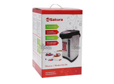 Термопот SAKURA SA-336RS это кухонный прибор успешно сочетающий в себе функции чайника, термоса и кулера. Как и чайник, он нагревает воду, как термос, может поддерживать её температуру на заданном пользователем уровне. Конструкция термоса включает в себя полностью стальной корпус. Нержавеющая сталь корпуса не подвержена коррозии и сохраняет природный вкус чистой воды.