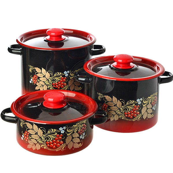Набор посуды 6пр.Рябина (2,3,4л.)N16L05 красн/черн