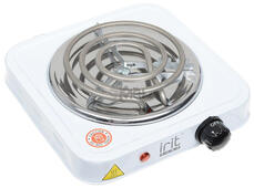 Электрическая плитка IRIT IR-8101 выполнена в классическом белом цвете. Модель оснащена поворотным переключателем с бесступенчатым регулированием мощности. Поверхность плитки изготовлена из эмалированного металла.