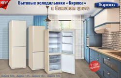 Двухкамерный холодильник Бирюса G127выполнен в стильной бежевой расцветке. Морозильная камера расположена в нижней части.