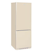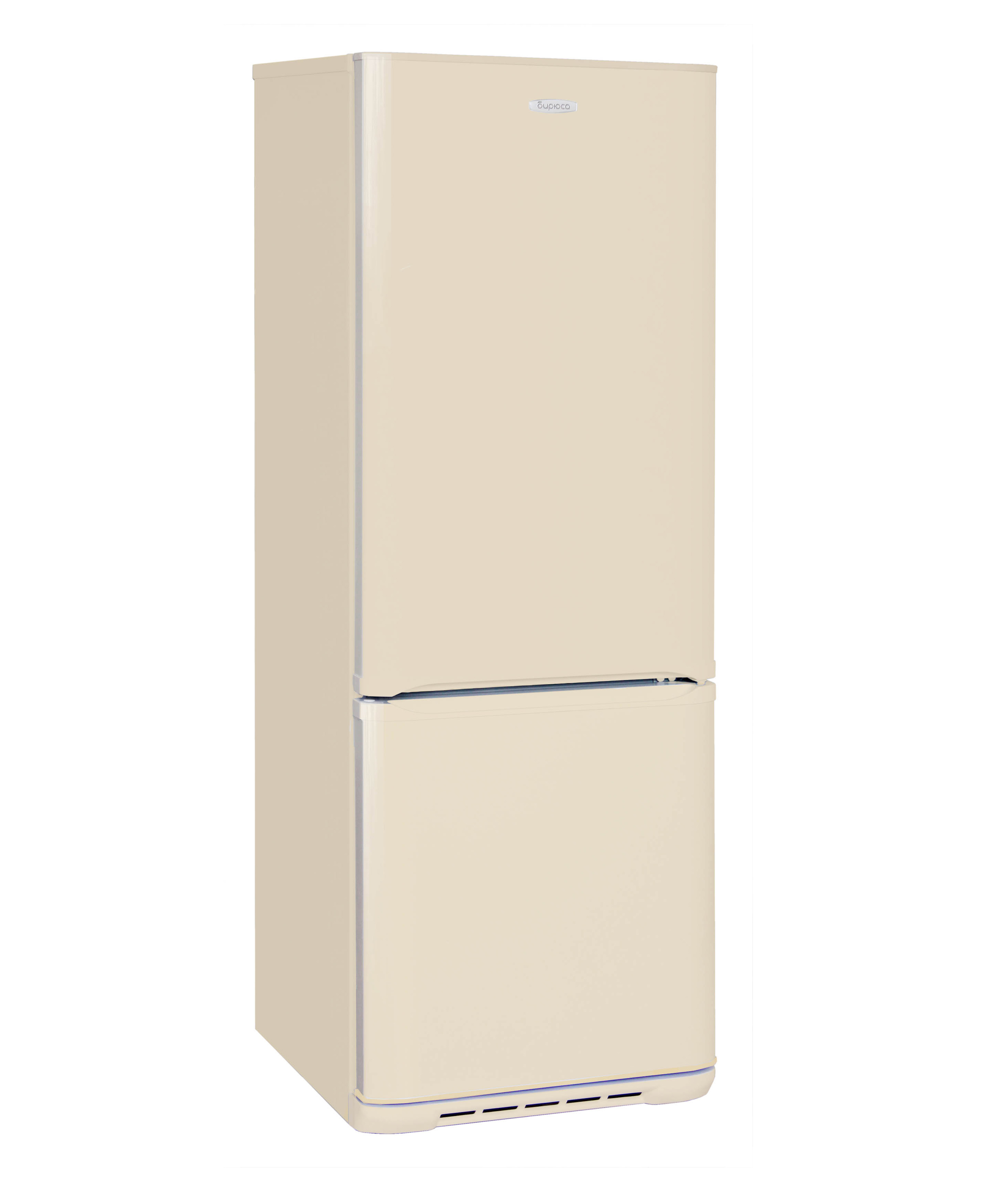 Стильный бежевый двухкамерный холодильник Бирюса G133. Морозильная камера в этой модели расположена в нижней части и снабжена тремя пластиковыми ящиками с ручками.
