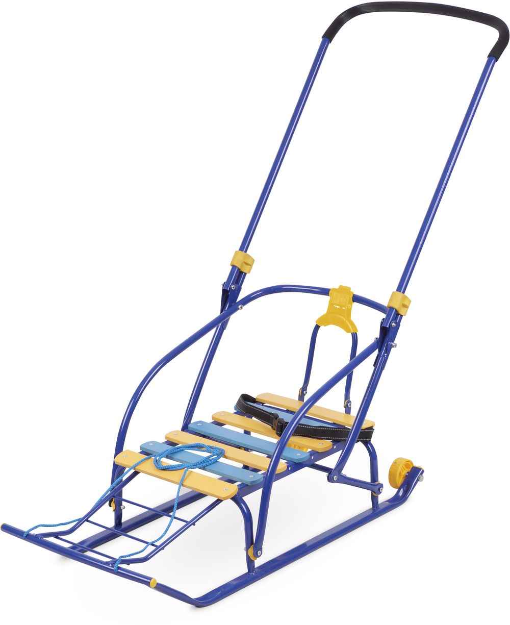 Санки дет.Nikki N2/С синий скл.ручка,спинка,колесо в комплекте