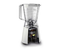 Стационарный блендер PHILIPS HR 2052 имеет кувшин из укрепленного пластика. Рабочая емкость 1,5-литрового кувшина составляет 1,25 литра и в ней можно смело измельчать самые разнообразные продукты. Для этого воспользуйтесь режимом пульсации или выберите необходимую скорость при помощи переключателя.