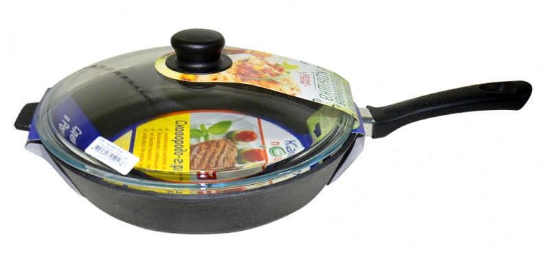 Сковорода-гриль чугунная d28см. Камская Г8062 бакелит. ручка, стекл. крышка
