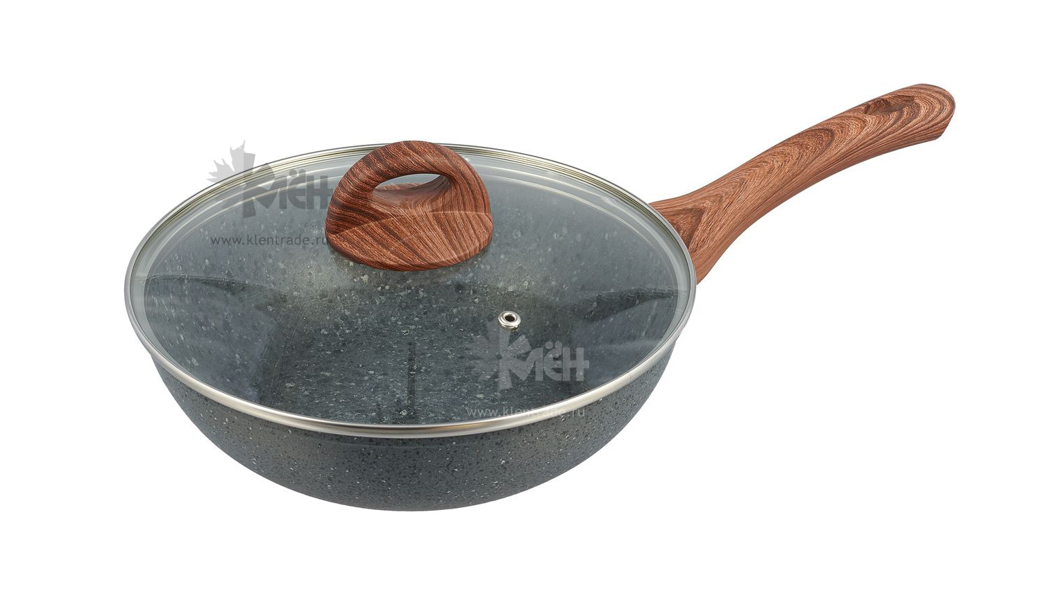 Сковорода ВОК d24 Чудесница BА-024+крышка, кован.алюмин., мраморн.покр., д/индукции