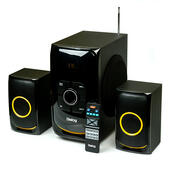 Комплект поставкисабвуфер, два сателлита со встроенными кабелями для подключения к сабвуферу, кабель для подключения сабвуфера к источнику сигнала 2RCA-3.5 мм стерео джек, беспроводной пульт ДУ, батарейки ААА для пульта ДУ 2 шт, руководство пользователя/гарантийный талон, упаковка