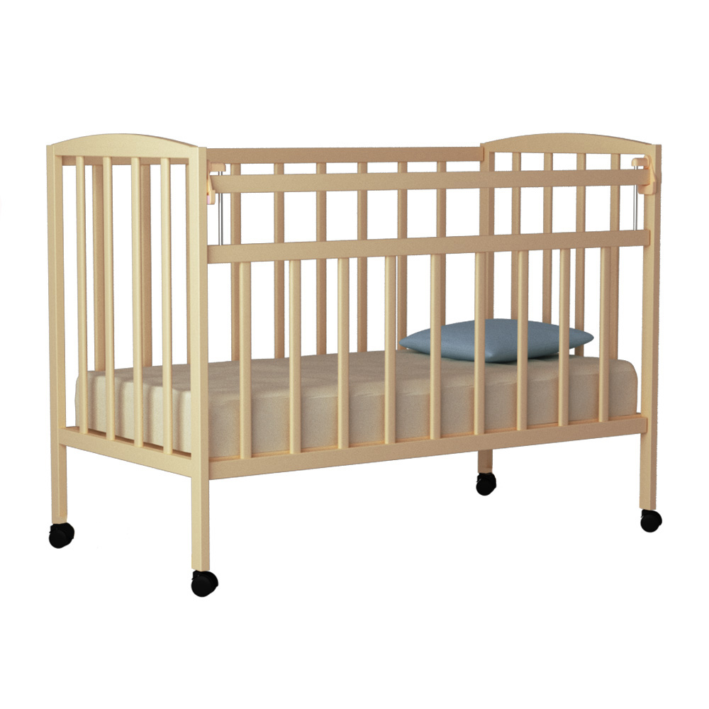 Кр 1-01м это, пожалуй, самый компактный вариант практичной и надежной детской кроватки. Дизайн модели прост, ее прямые и строгие линии уместны в любом интерьере. Кроватка снабжена колесами, которые позволяют без проблем ее передвигать.