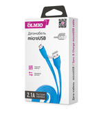 Дата-кабель USB-MicroUSB 1.0м OLMIO 2.1А голубой плоский