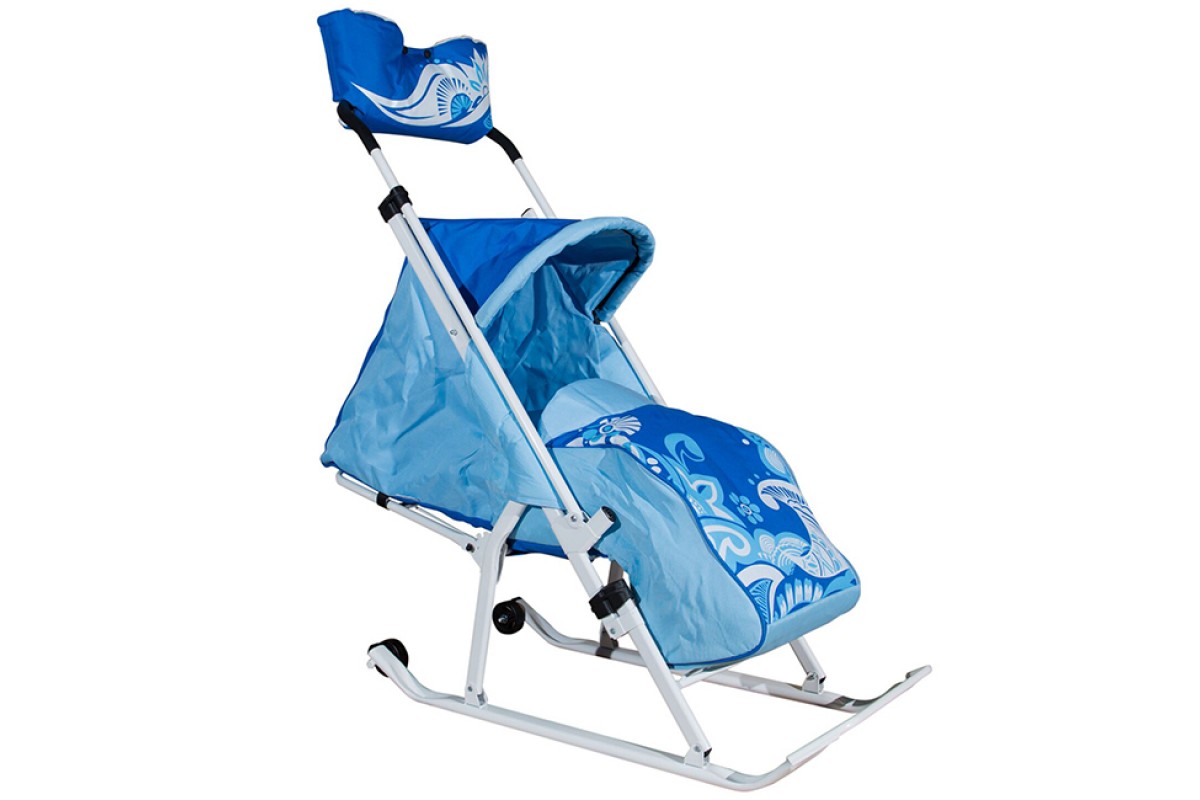 Санки-коляска Тяни-Толкай Трансформер Люкс Зимняя сказка синий+сумка