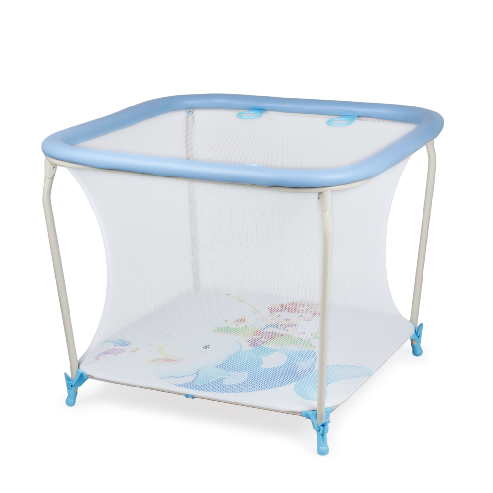 Стенки выполнены из прочной сетки, которая имеет довольно большие ячейки и не мешает малышу фокусировать взгляд на предметах за манежем. Мягкий верх стенок также обшит яркой цветной клеенкой, которая легко моется. Ножки имеют круглые пластиковые основания, которые исключают повреждения пола. Модель легко разбирается и не требует много места при хранении в таком виде.