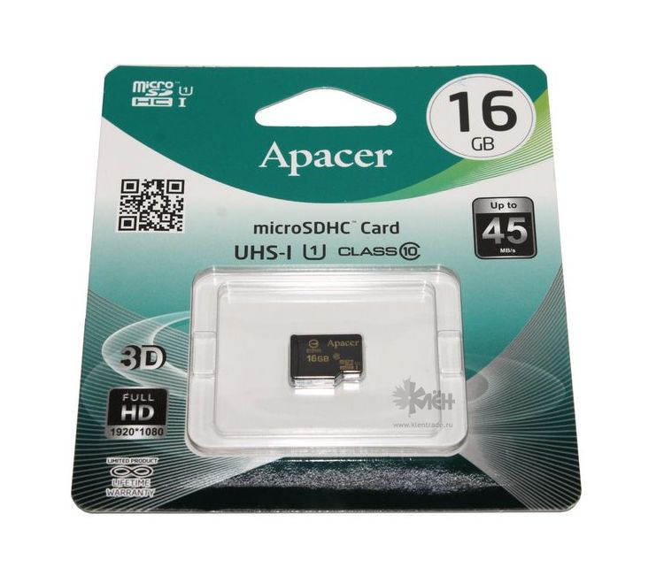 Карта памяти Apacer Class 10 объемом 16GB идеально подходит для хранения фотографий, видеоматериалов, документов, музыки.
