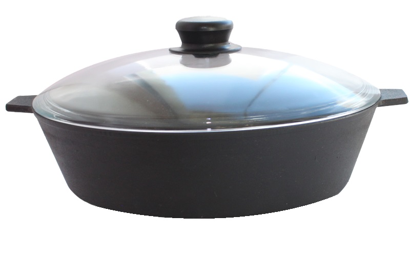 Сковорода чугунная ВОК d28см Камская вок28 стекл.крышка, 2,7л., с двумя ушками
