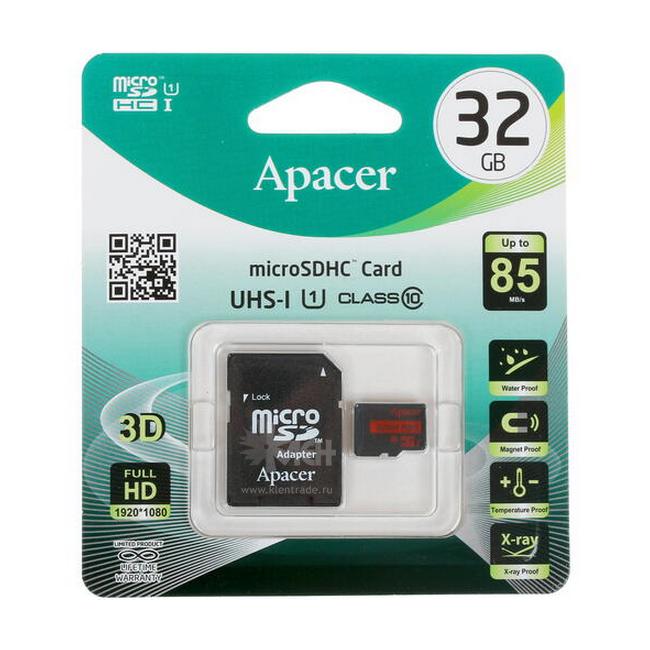 Карта памяти micro SD 32Gb Apacer Class 10 с адаптером