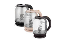 Прибор выделяется стильным дизайном, на корпусе чайника имеется цветочный рисунок.