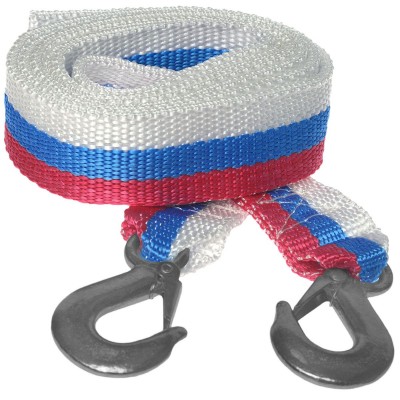 Трос-ремень буксировочный 5т 5м с крюками полосатый Россия 0032