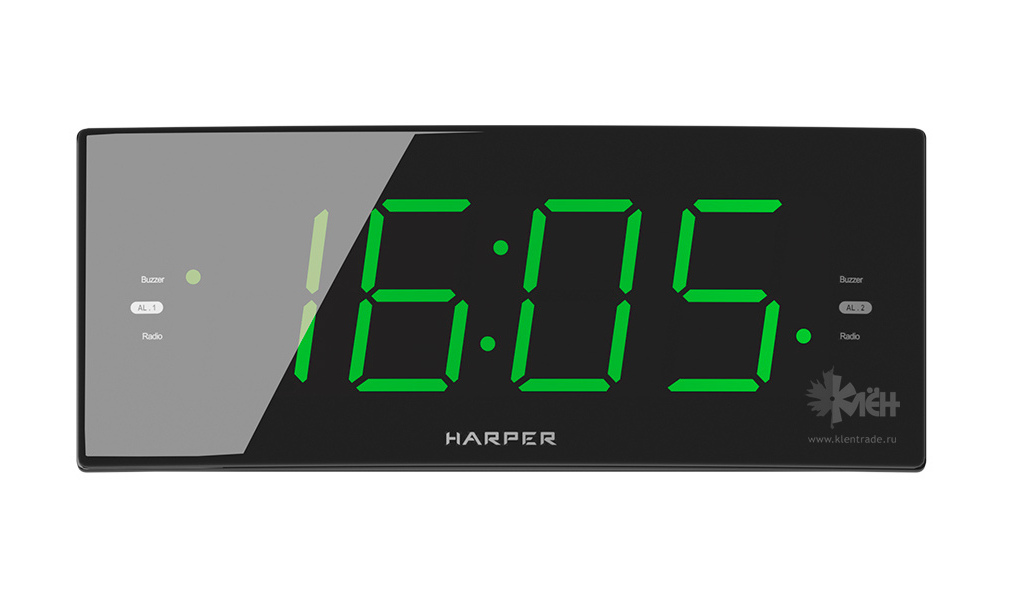 Harper HCLK-2044 – это стильные цифровые часы со светодиодной индикацией зеленого цвета. Вместе с тем – это ещё и радиоприёмник, принимающий сигнал в двух диапазонах (AM и FM), а также будильник, в качестве сигнала на котором можно выставить не только стандартную встроенную мелодию, но и эфир любимой радиостанции.