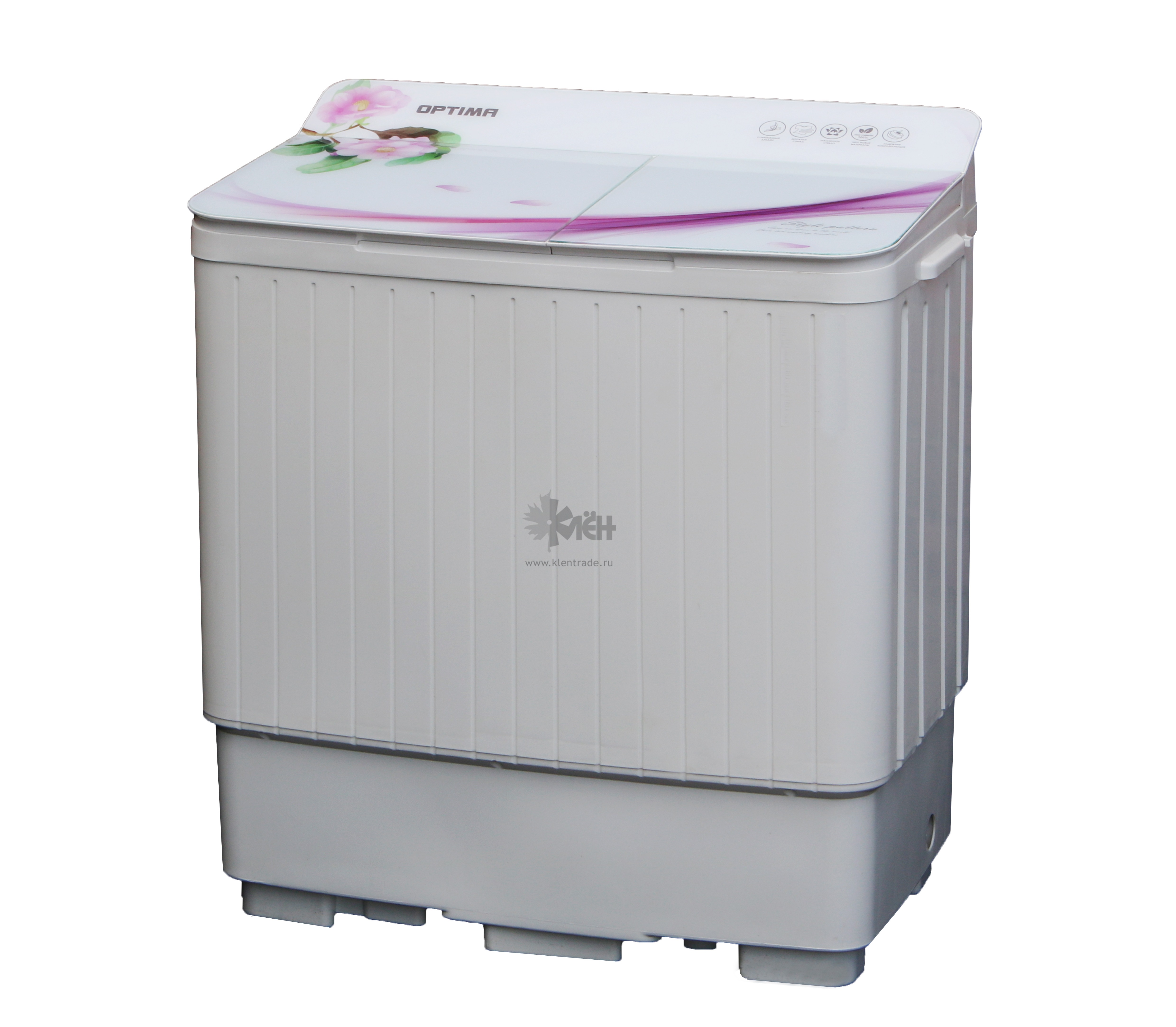 Стиральная машина п/ав OPTIMA MCП-50СТ 5кг два бака Стеклянная крышка(белое стекло сиреневые цветы)