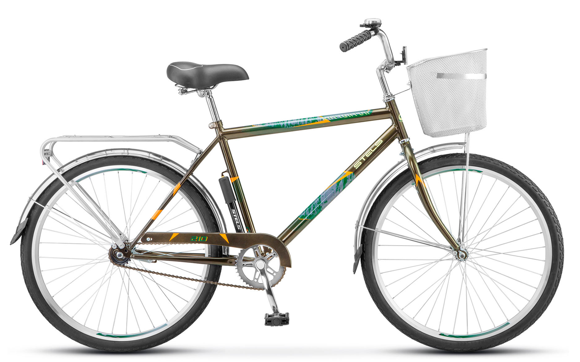 Велосипед 26" STELS Navigator-210 Gent мужск.рама, +корзина, рост 19" хаки