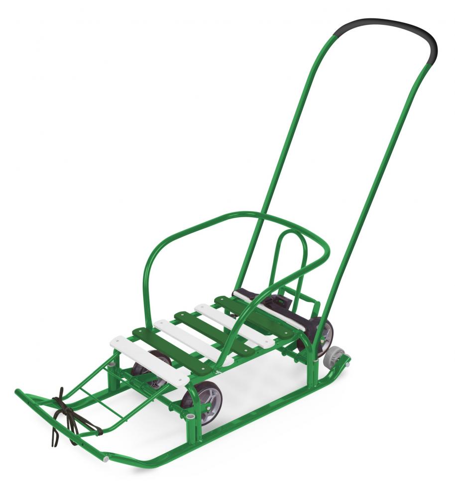 Санки дет.Тимка 5 Универсал Т5У зелёный, спинка, ручка бол. колёса