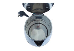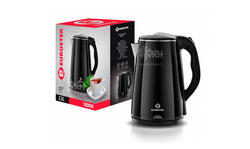 Материал внутренней стенки - нержавеющая сталь, внутренняя же сделана из высококачественного пластика. Чайник приобретает "эффект термоса". Блестящий чёрный корпус без труда внесет свою долю уюта в любой интерьер, станет изысканным акцентом. Имеется световой индикатор рабочего режима чайника.