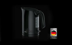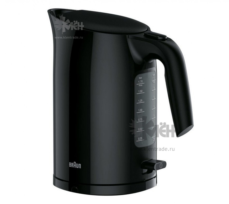 Стильный чёрный пластиковый корпус электрочайника BRAUN WK-3100 BK это выигрышное решение для любого интерьера. Эргономичная широкая ручка комфортна в использовании. Клавиша открытия крышки расположена в её верхней части. Поворотная база позволяет ставить кувшин на неё с любой подходящей вам стороны.