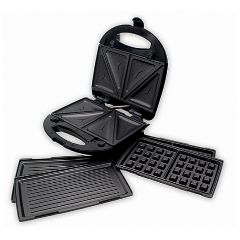 Мультигриль электрический 3 в 1. Мощность: 700Вт. Панели для жарки: для сэндвичей, для венских вафель, для гриля. Материал: металл. Покрытие: антипригарное жаропрочное. Вариант использования: закрытый (для обжарки с двух сторон). Световой индикатор работы. Световой индикатор нагрева. Ненагревающийся корпус. Фиксатор ручек. Компактное вертикальное хранение. Комплектация: 3 вида съмных панелей.