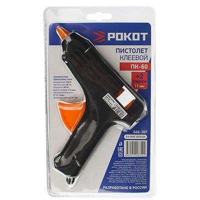 Пистолет клеевой РОКОТ ПК-60 60Вт +2стержня 11мм