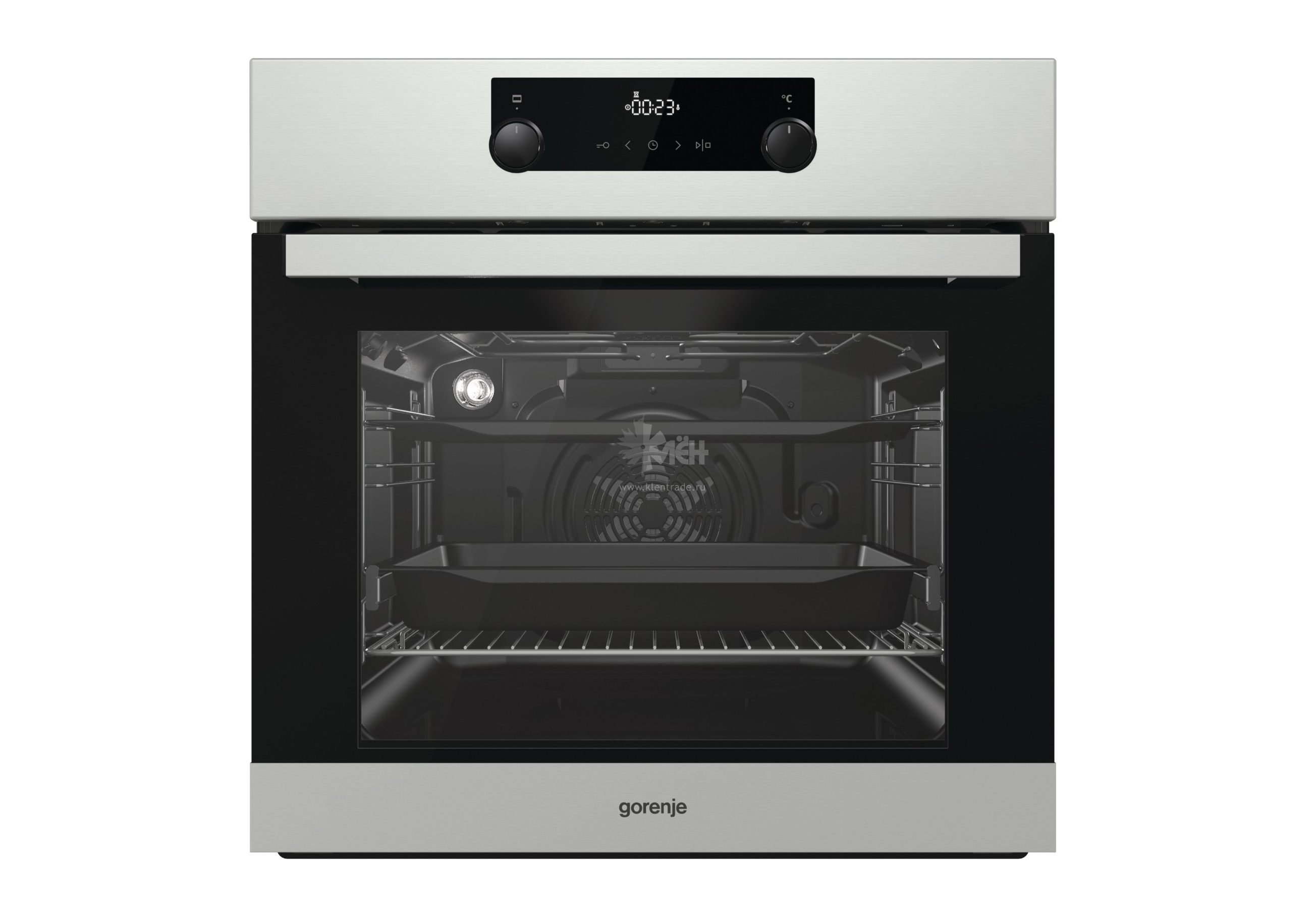 Электрический духовой шкаф Gorenje BO 635 E20X-2 с независимым типом подключения выполнен в стильной серебристо-черной расцветке и обладет объемом 71 литр.