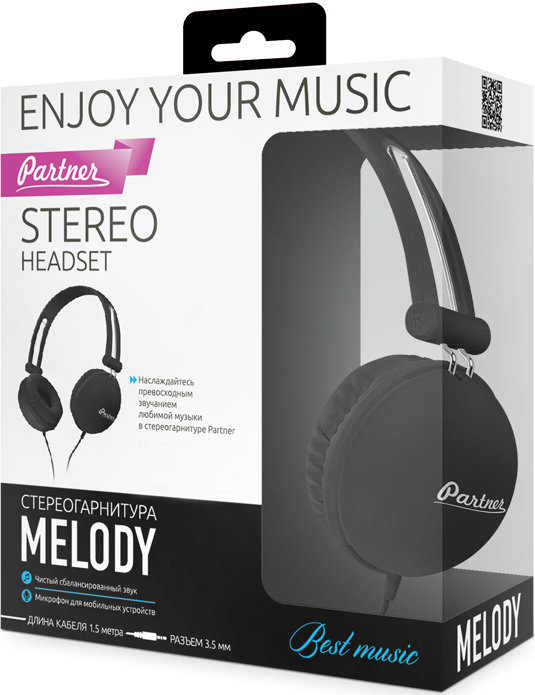 Наушники с микрофоном Накладные Partner Melody Черные 037176