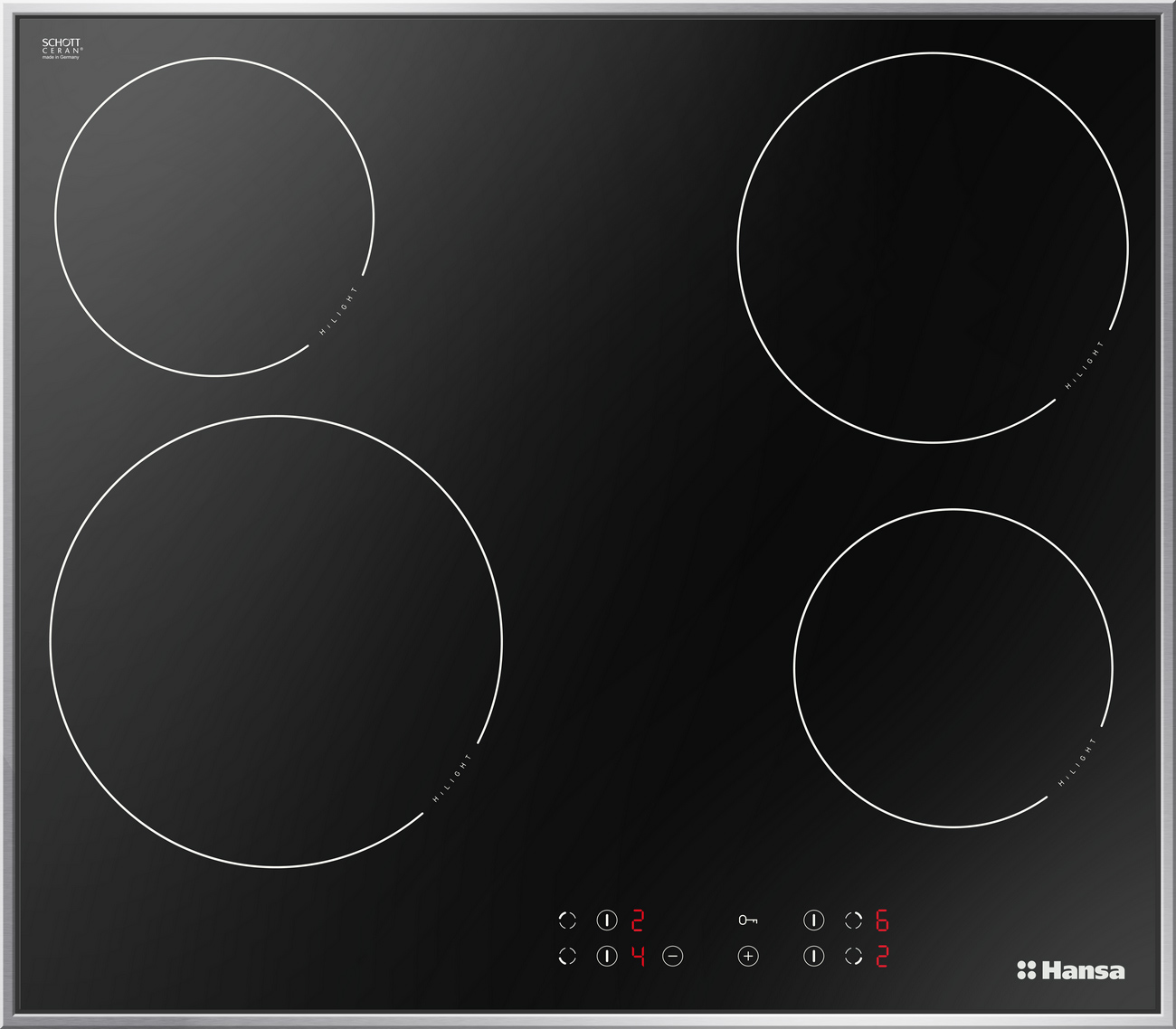 Независимая электрическая варочная поверхность HANSA BHCI 96306 оснащена 4 конфорками. Модель выполнена в черном цвете. Наружные размеры (ШхГ) составляют 57,5×50,5 см, вес поверхности составляет 7,8 кг.