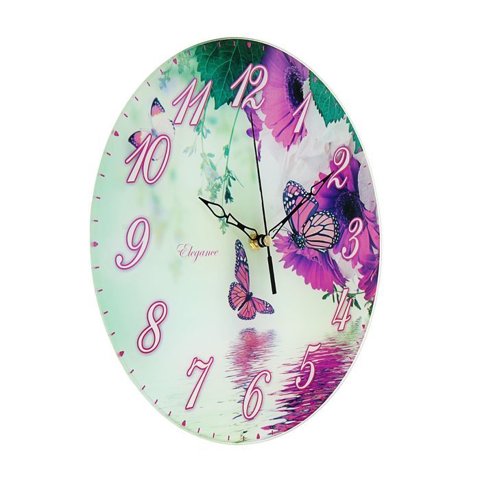 Часы настен. Вега СО15 Бабочки сиреневые СТЕКЛО 318