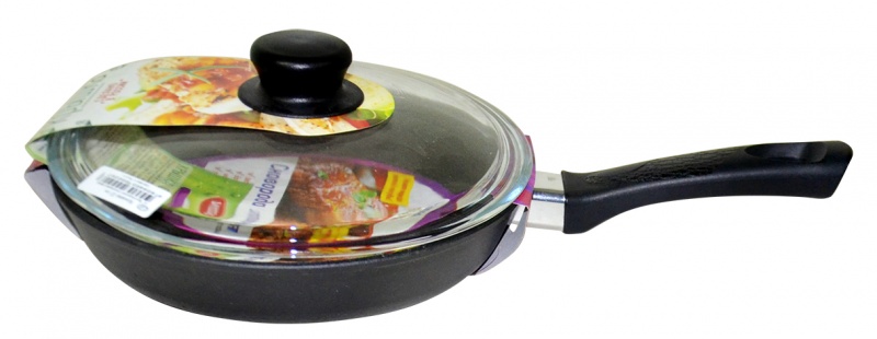 Сковорода чугунная d22см. Камская Б2042 бакелит. ручка, стеклянн. крышка
