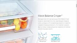 Благодаря ячеистой структуре крышки Moist Balance Crisper конденсат накапливается в сотах, предотвращая попадание капель на продукты. В то же время вода медленно испаряется, создавая оптимальную влажность. Это позволяет сохранить фрукты и овощи гораздо дольше при сохранении их полезных свойств и вкусовых качеств.