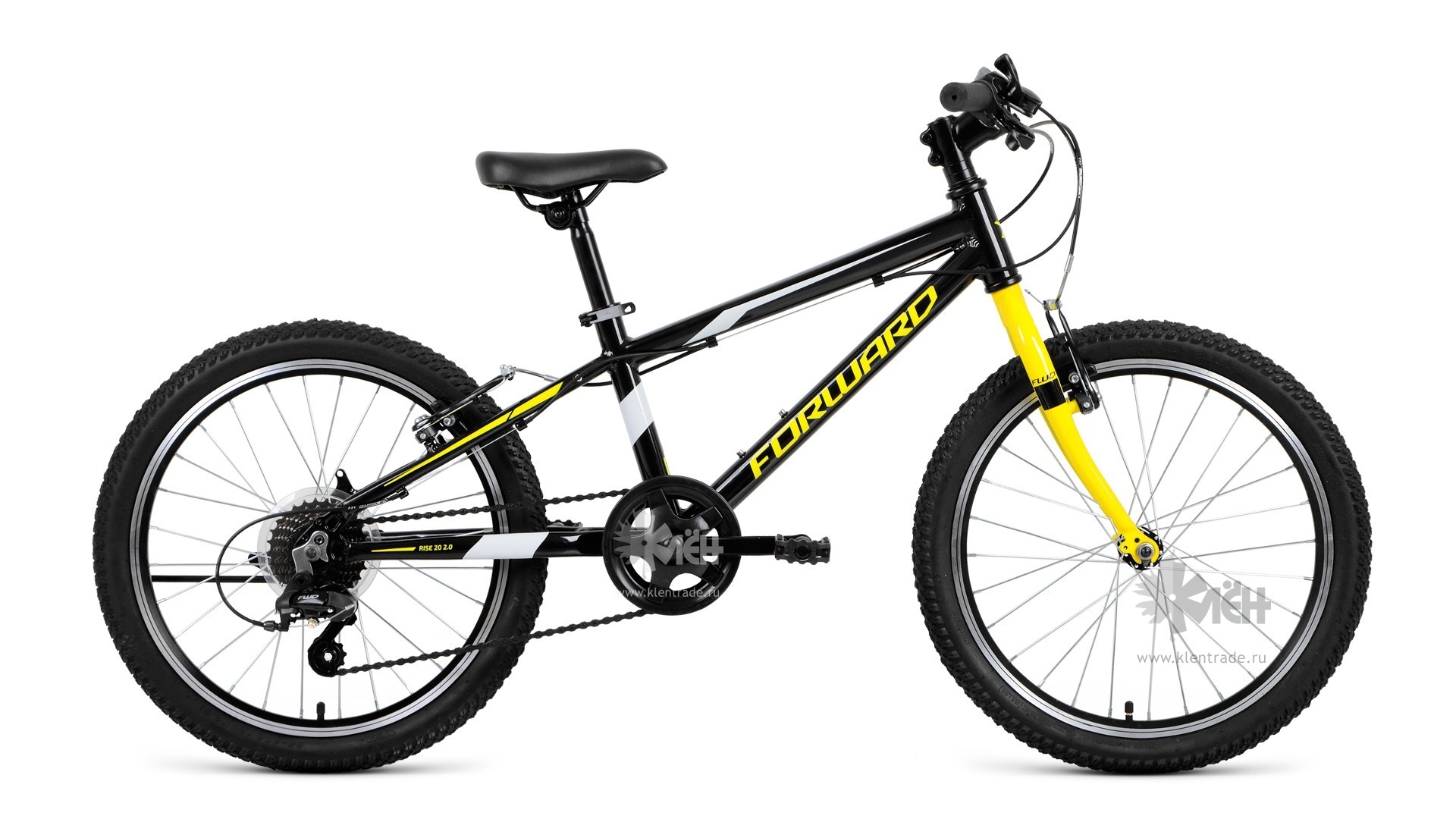 Велосипед 20" FORWARD RISE 2.0 7ск., рост 11" черный/желтый