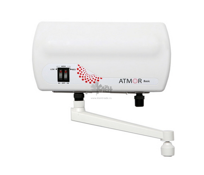 Водонагреватель Ariston Atmor BASIC 5 KW TAP используется для нагрева проточной воды, вода нагревается сразу при проходе через него. Номинальная мощность водонагревателя – 5 кВт, водонагреватель подключается к розетке.