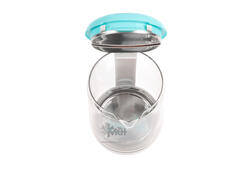 Корпус электрического чайника SAKURA SA-2716BL выполнен из качественного термостойкого стекла с нежно-голубыми вставками.