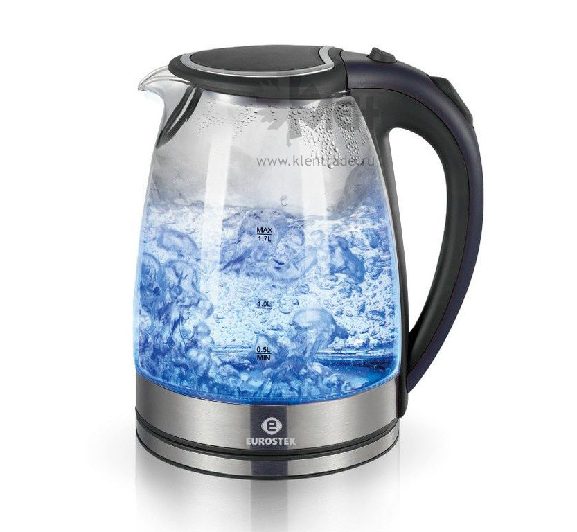 Эффектная подсветкаСветодиодная подсветка в рабочем режиме заметно оживляет чайник Eurostek EEK-3019. Прозрачное стекло позволит наблюдать за процессом закипания в чайнике. Пузырьки закипающей воды в сочетании с синей подсветкой корпуса выглядят эффектно и завораживающе.