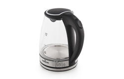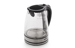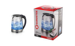 Корпус электрического чайника Eurostek EEK-3019 выполнен из качественного термостойкого стекла с блестящими металлическими вставками.