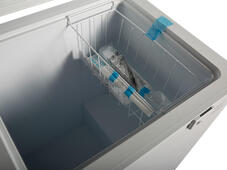 Глухая крышка морозильного ларя надежно защищает содержимое от окружающего тепла, внешний дисплей отображает текущий температурный режим. Встроенный в ручку замок обеспечит сохранность содержимого ларя.