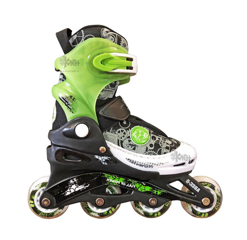 Роликовые коньки 38-41р. Action PW-007 алюм.рама, кол.полиуретан, мягк.ботинок черн./зел.