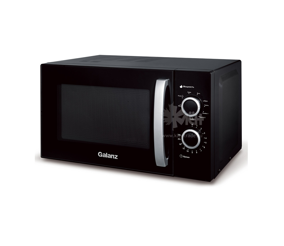 Внутренняя поверхность камеры GALANZ MOG-2009M выполнена из долговечного эмалированного металла и легко поддается мойке. Микроволновая печь объемом на 20 литров без труда может вместить в себя довольно крупные блюда. В работе управляется проверенным механическим способом, дверца открывается ручкой.