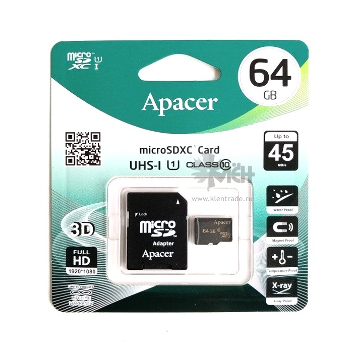 Карта памяти Apacer Class 10 объемом 64GB идеально подходит для хранения фотографий, видеоматериалов, документов, музыки.