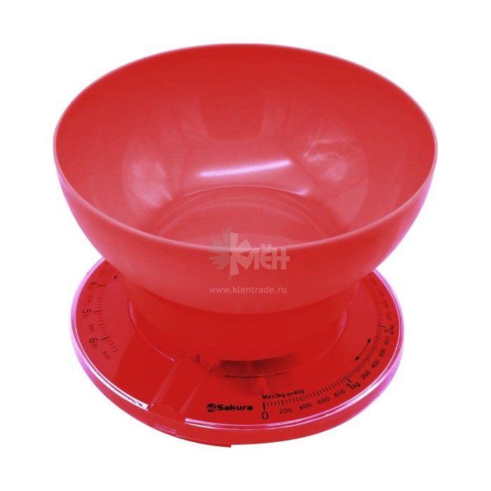 Sakura SA-6008R - это кухонные механические весы. С их помощью можно взвешивать продукты общей массой до 3 килограммов. Данная модель оснащена круглой пластиковой чашей.