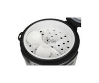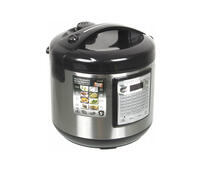 Дизайн выполнен в классическом стиле цилиндрической формы в серебристо- черном цвете. Небольшие габариты 28х30х28 см позволяют разместить мультиварку даже на компактной кухне. Корпус сделан из нержавеющей стали, крышка - из пищевого жаростойкого пластика.