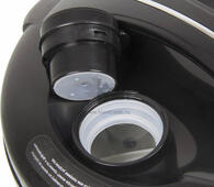 В верхней части крышки расположена ручка, кнопка для открытия крышки и клапан для выпуска пара, который легко снимать и удобно мыть. Во внутренней части крышки находится уплотнительная резинка, которая не дает выходить пару во время готовки. Для того чтобы во время открытия конденсат не стекал на стол или на нагревательные элементы, на корпусе находится "сборник для конденсата", который легко снимается и моется. Также, на корпусе находится и панель управления с жк-экраном и 42 автоматическими программами, которую сложно не заметить.