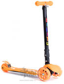 Самокат 3-ёх кол. BIBITU PLAY SKL-07D складной, руль 52-70см., светящ.кол., до 50кг., оранжевый