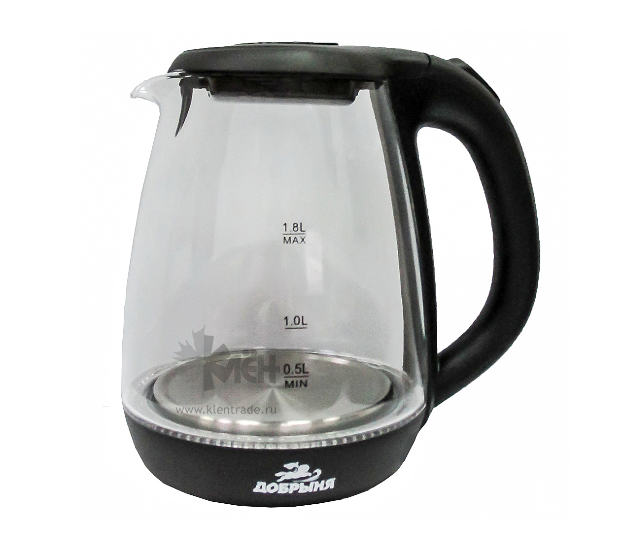 Электрочайник ДОБРЫНЯ DO-1234 B представлен в корпусе классической чёрной расцветки. В основе колбы прозрачное термостойкое стекло, через которое вы сможете наблюдать процесс кипения воды.