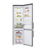 Большой, вместительный двухкамерный холодильник LG GA-B509BLGL с морозильником, расположенным в нижней части. Холодильник выполнен в стильном гафитовом корпусе.